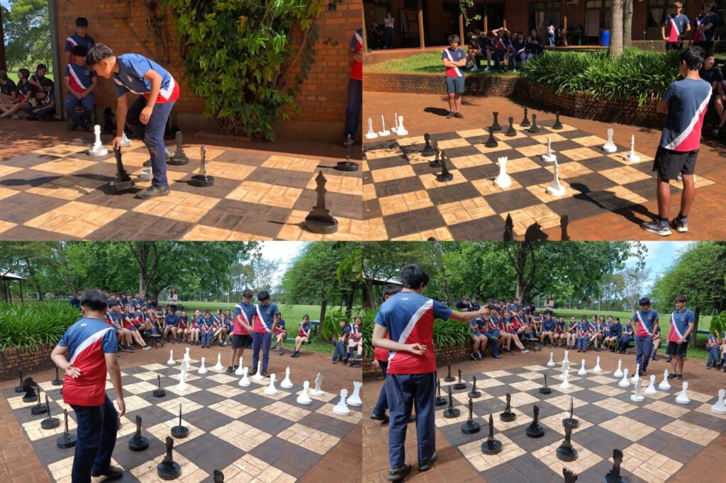 Días atrás dábamos cuenta del torneo de Ajedrez realizado por ciclos en nuestro colegio. Esta semana se realizaron las partidas finales en el tablero gigante demarcado en el patio de la biblioteca.