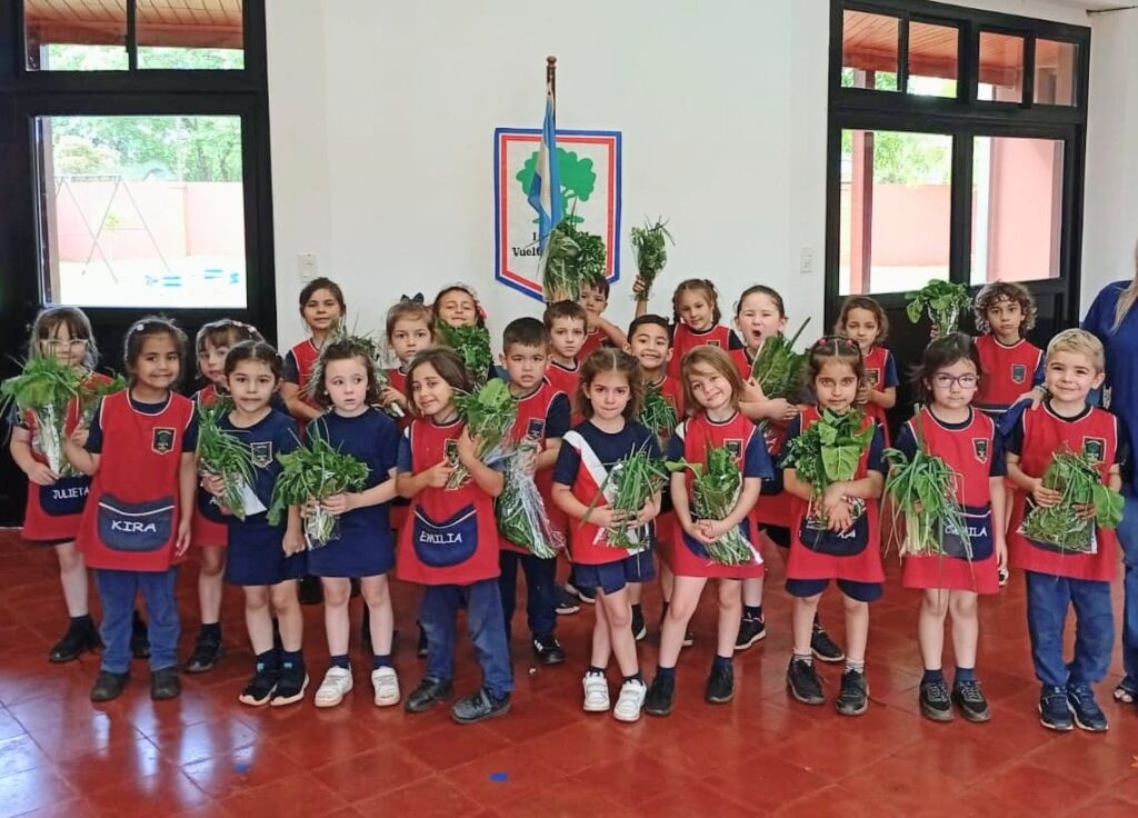 Todos felices, pues cada uno llevó a su familia, acelga; cebollita de verdeo y perejil, productos que sembraron, cuidaron y cosecharon. Desde muy pequeños los niños aprenden y fomentan la alimentación saludable.